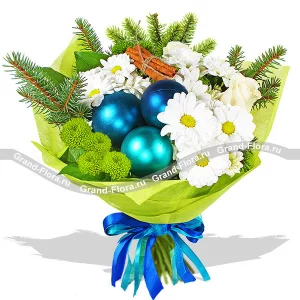 Фейерверк - корзина из роз, хризантема и новогоднего декора